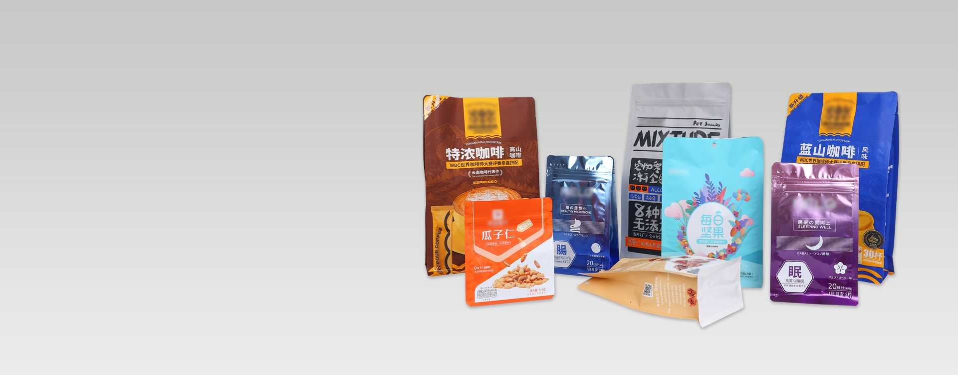 要了解自己產(chǎn)品的特性,進而選擇符合自己產(chǎn)品的包裝袋材料,目前市面上主打的食品包裝材料有PE、PET、PA等。比如真空袋(又稱尼龍袋)因其抽真空效果好、透明度高、密封性好、防潮性能好、和不易老化等特點,備受很多食品企業(yè)的青睞。又比如鋁箔袋(又稱純鋁袋),又有阻隔空氣性能強、防氧化、防水、防潮、無毒無味、符合食品、藥品包裝衛(wèi)生標準等特點,此外,還有耐高溫和耐低溫的特點,一些經(jīng)過高溫蒸煮的的食品選擇包裝